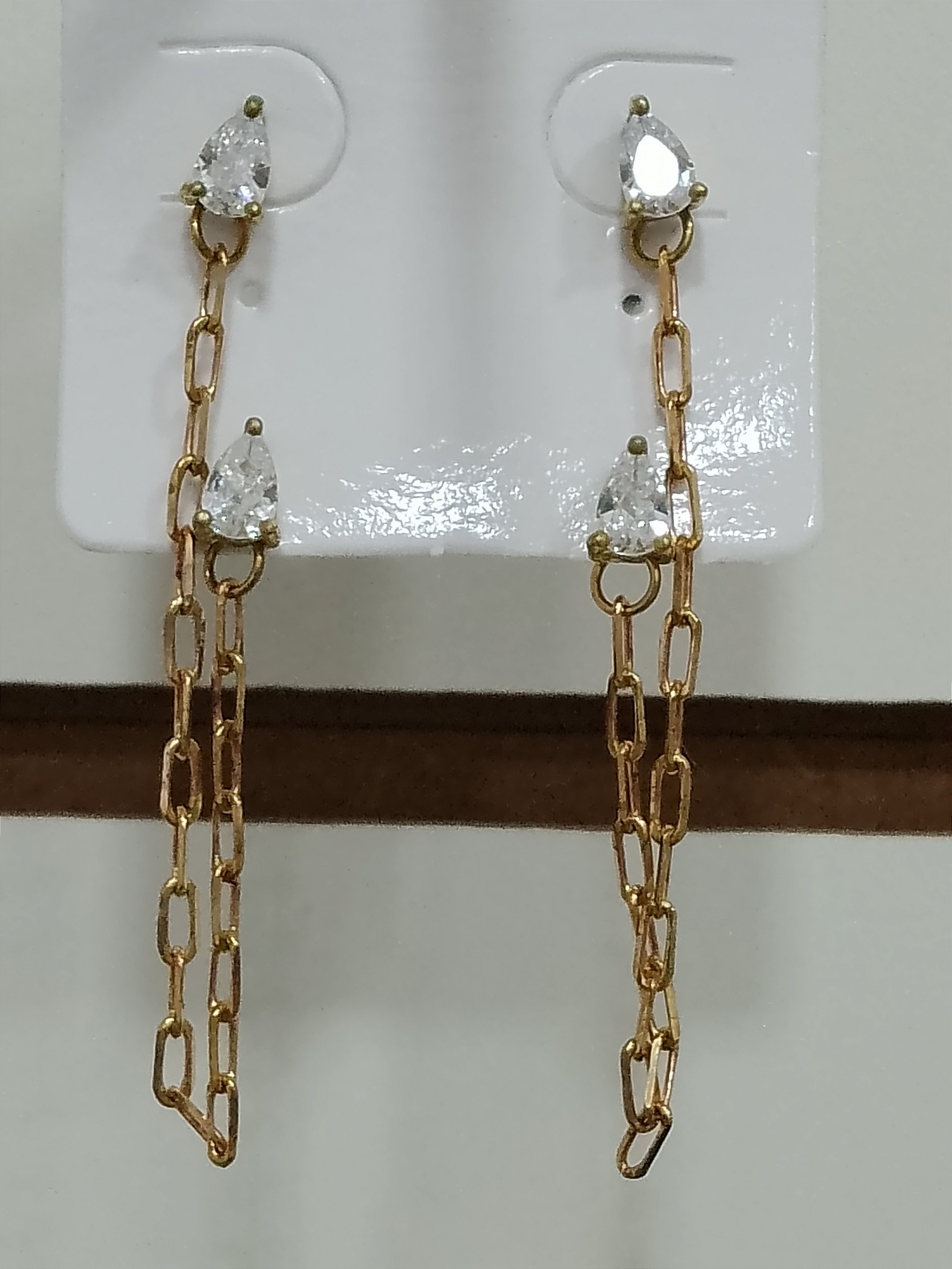 Brinco Ear line, corrente 7,5cm, gota 4x6 em zircônia .P2,9g