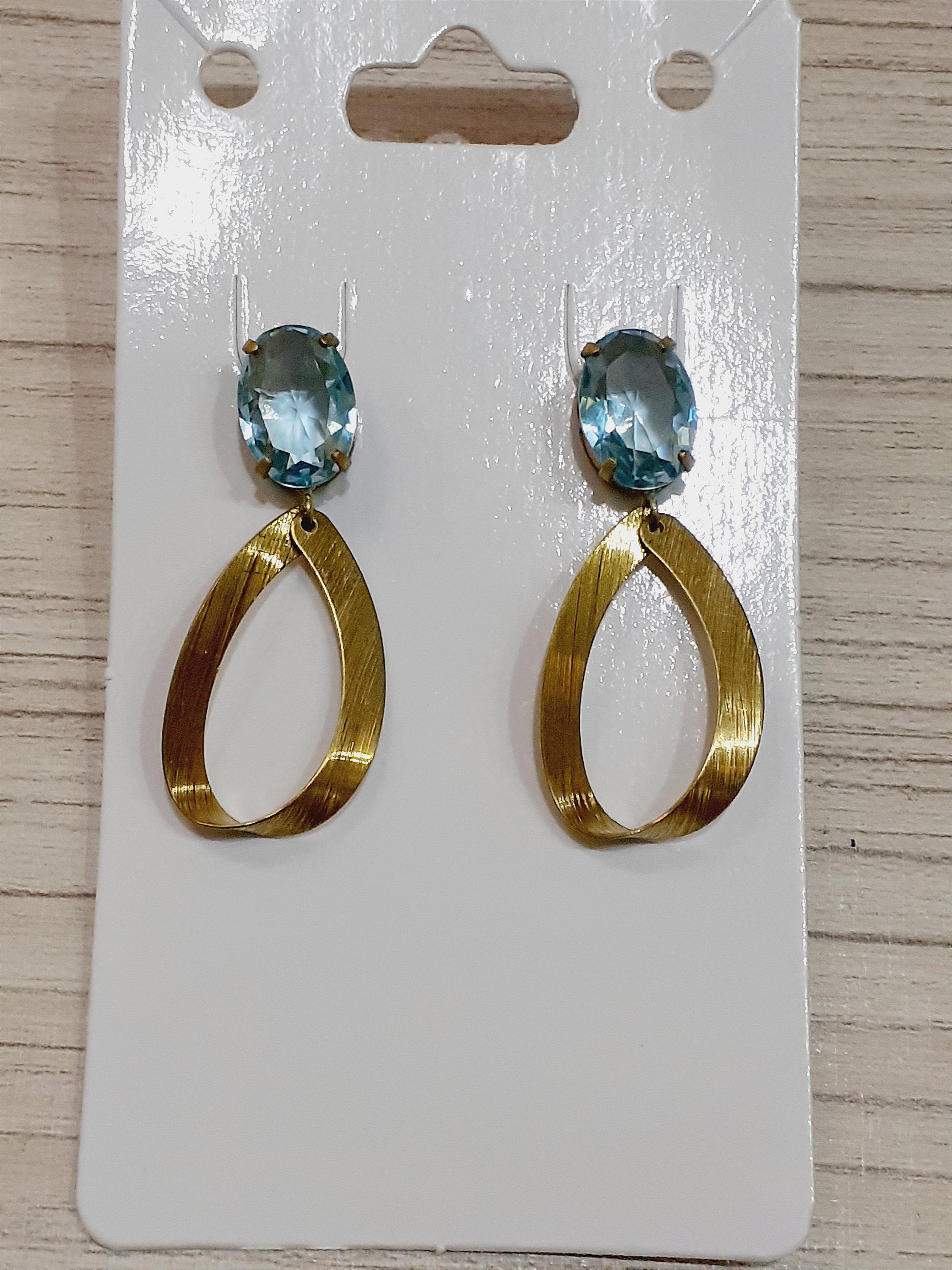 Brinco oval, com pedra 10x14, em vidro lapidado.