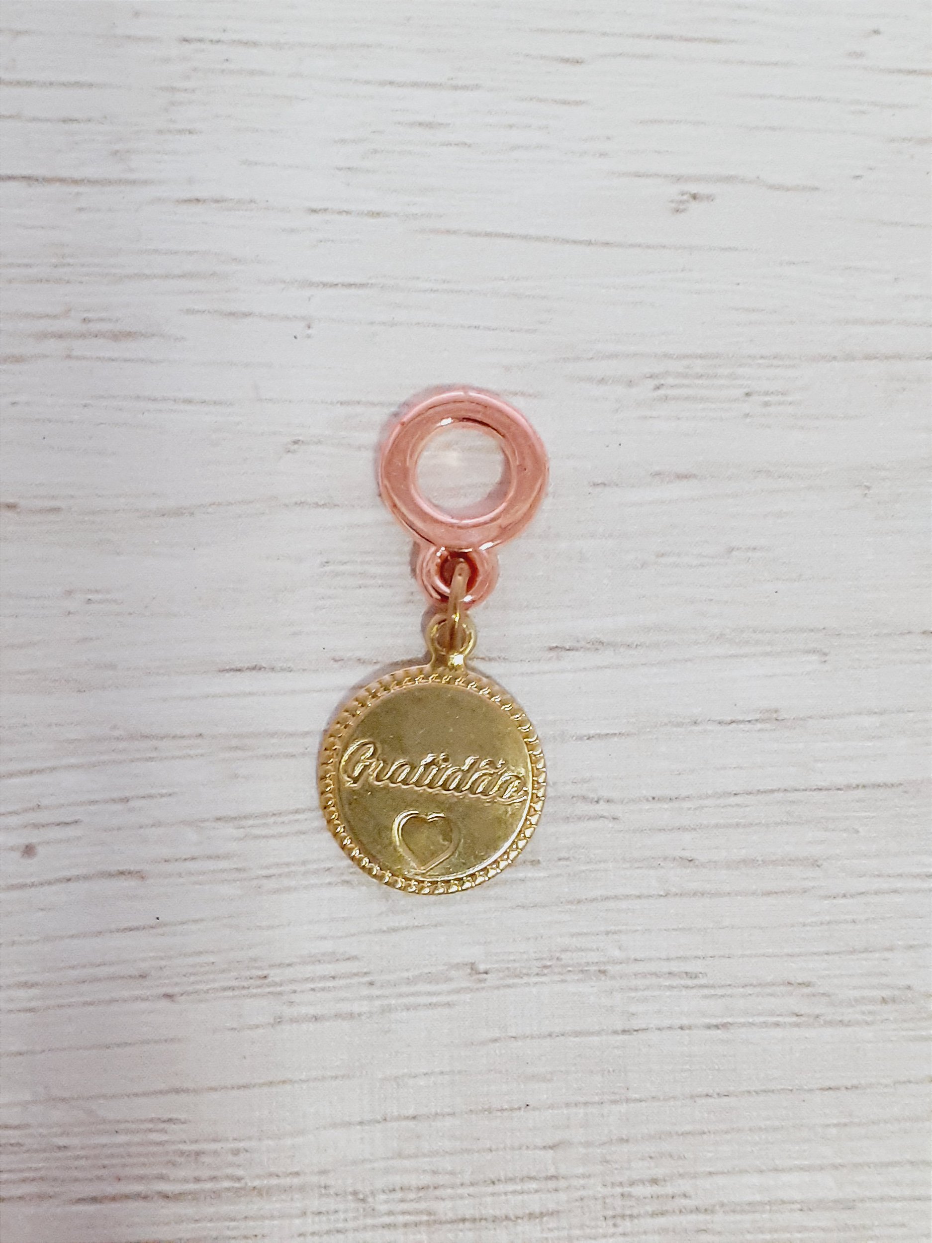 Entremeio para berloque medalha gratidão (10mm) . T2,5cm.p0,9g. Em latão e abs