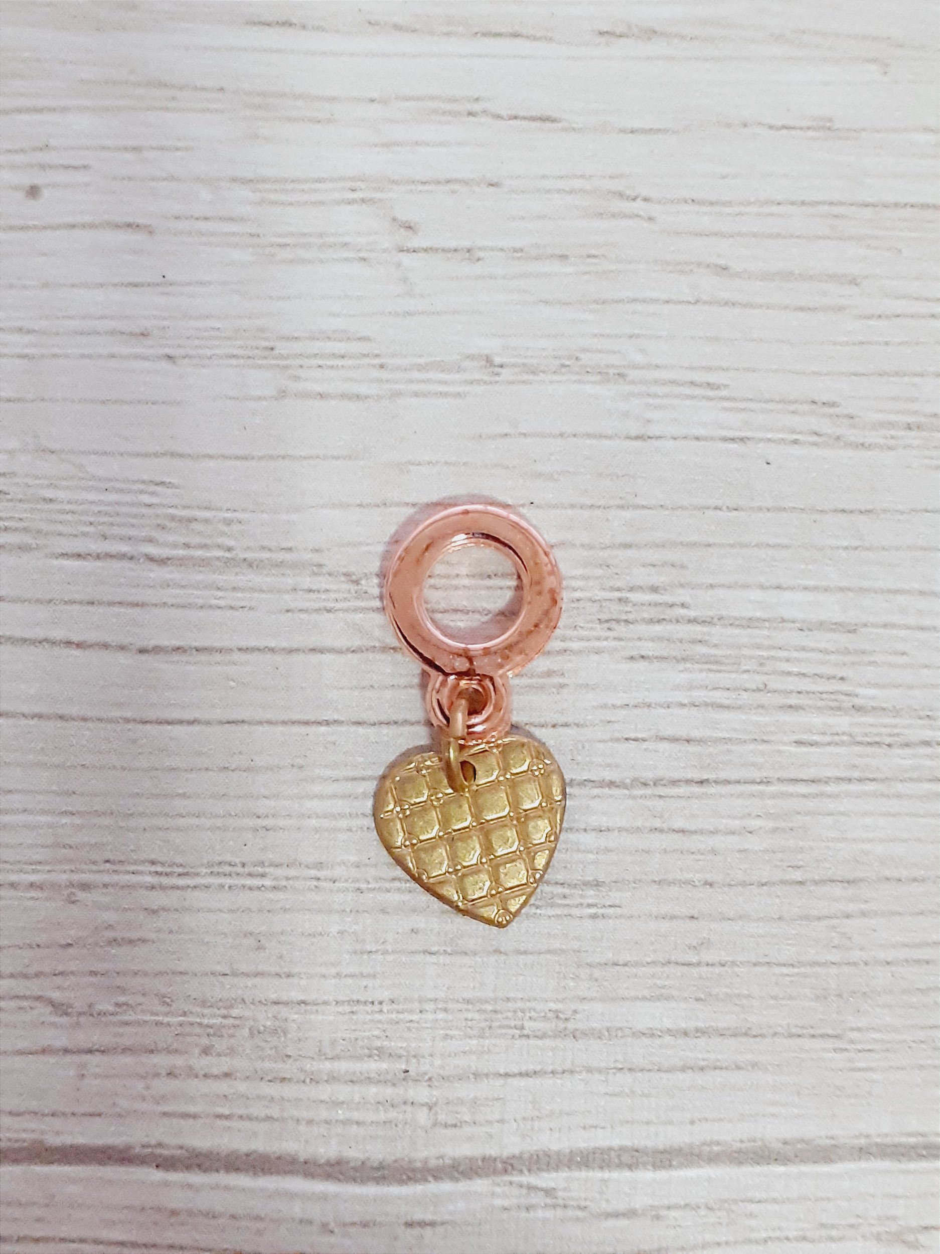 Entremeio com coração quadriculado. Em latão e abs. T2,1cm. P0,3g