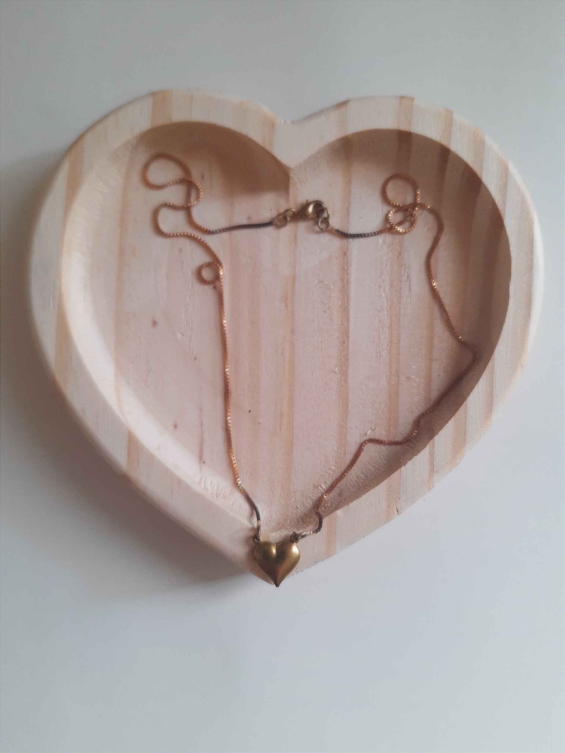Gargantilha em corrente veneziana 0.8 mm com coração liso em latão 10 mm. P. 2,3g, tamanho 44 cm.