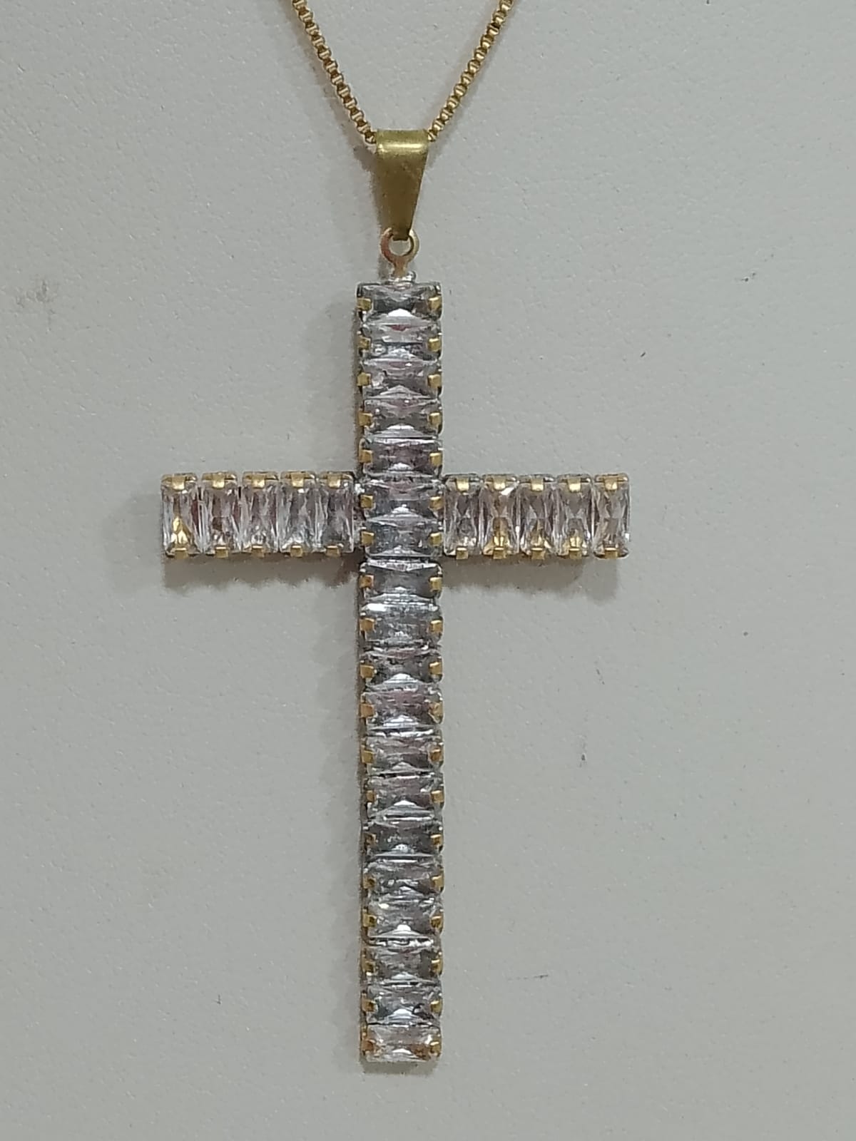 Pingente baguete em zircônia. T 5,5cm . P6,3g(sem corrente)