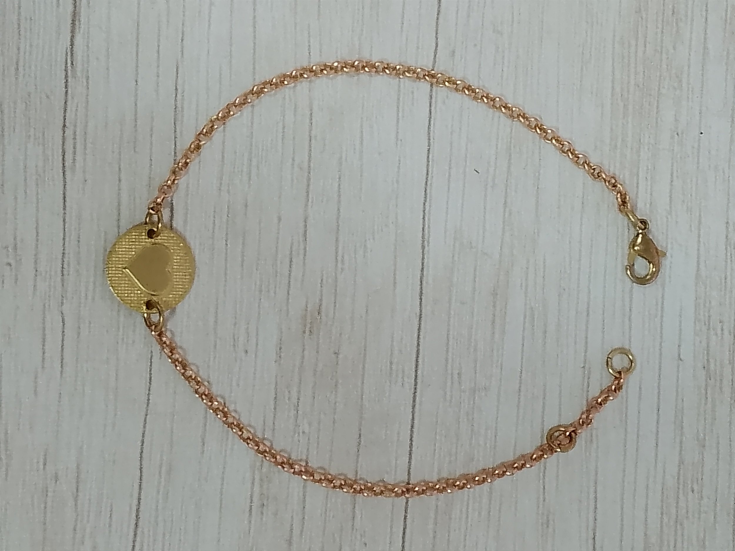 Pulseira elo português 2 mm. T18 cm com medalha coração 10 mm . P1,9 g