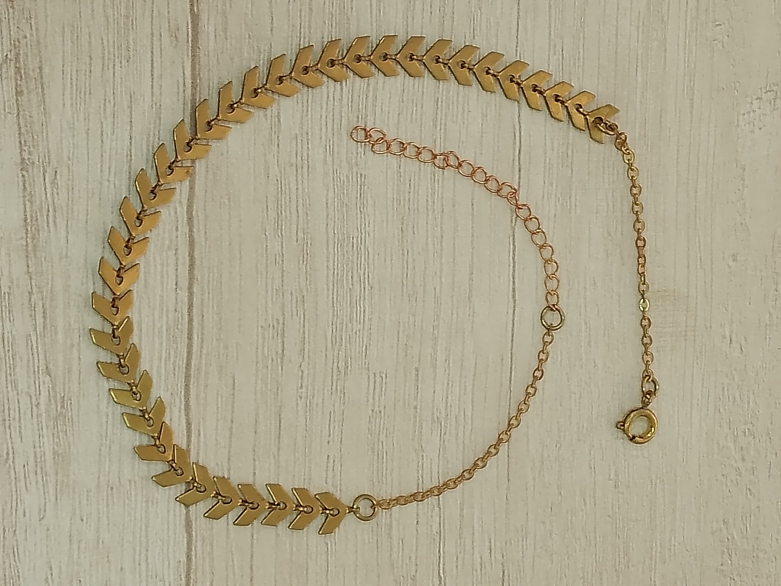 Tornozeleira corrente tipo seta . T 12 cm + 4cm corrente elinho nas laterais, 5cm extensor.(25cm). P 3,2g