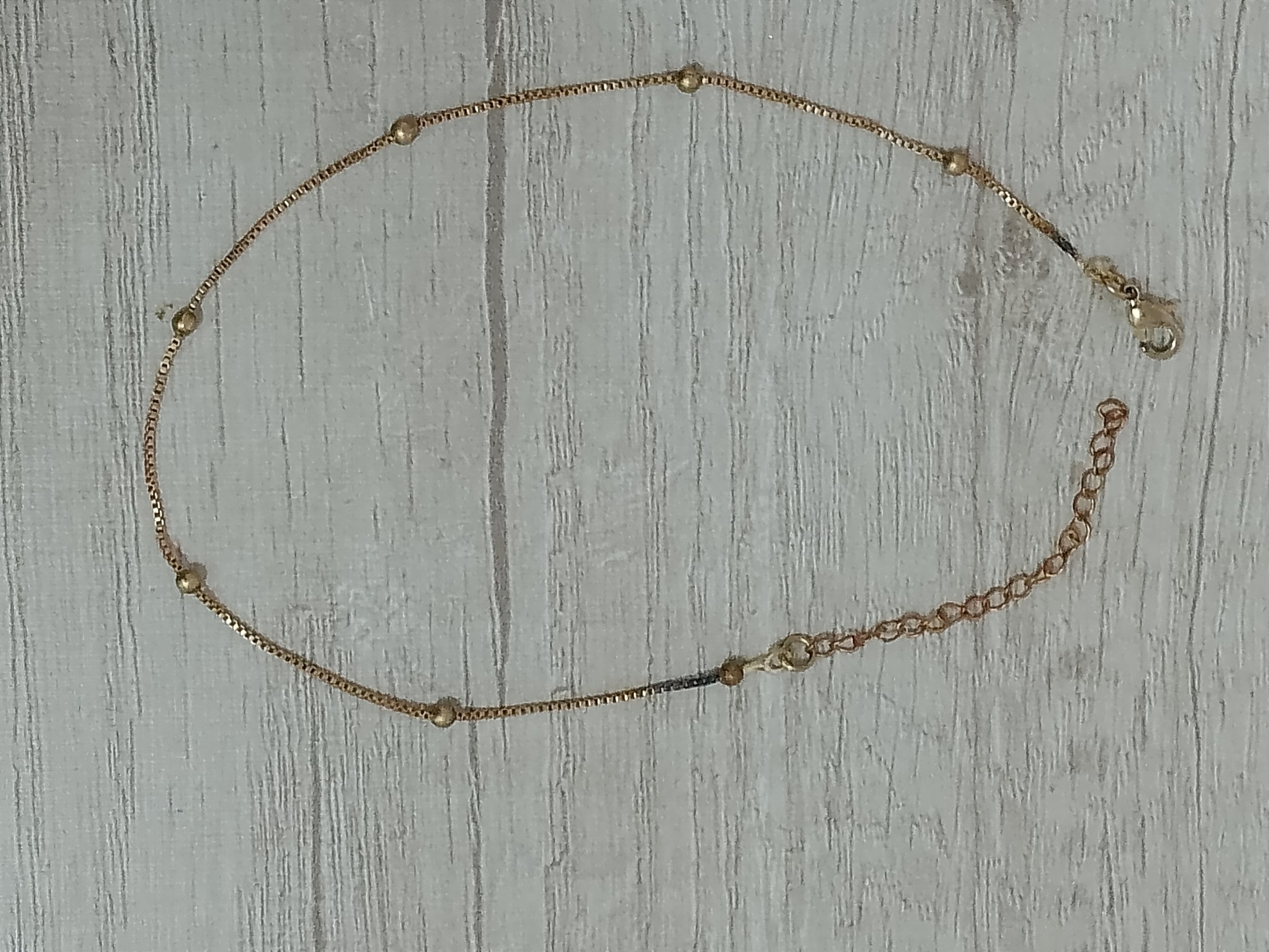 Tornozeleira corrente veneziana 0,8 mm com bolinha 2mm .T 20cm+5 cm extensor. P1,2g